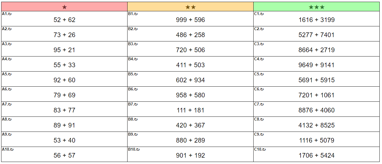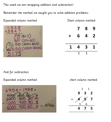 We have recently been practising addition and subtraction methods. Please use the method that you have been practising in maths lessons.