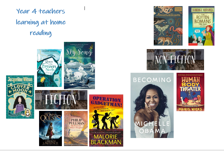 We would like you to think about the books you have read since you have been at home. The teachers have created a poster of all the fiction and non – fiction texts they have read recently. We would like you to create your own.